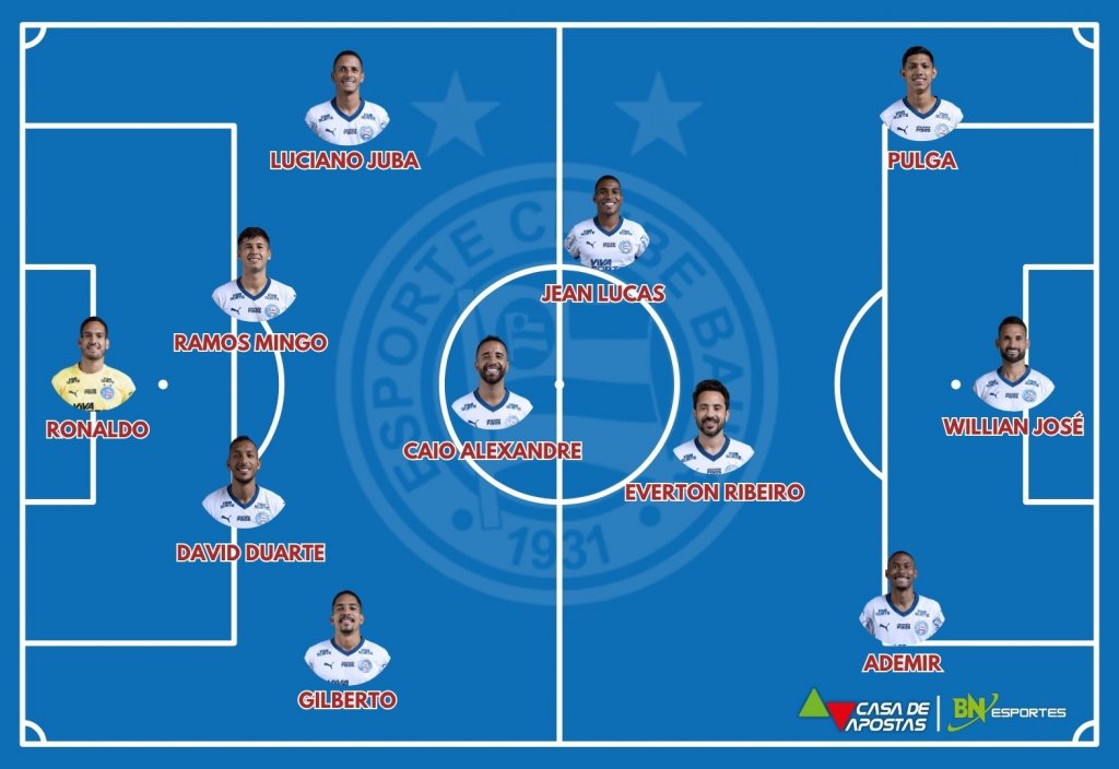 Bahia: Ronaldo, Gilberto, David Duarte, Ramos Mingo e Luciano Juba; Caio Alexandre, Jean Lucas, Everton Ribeiro; Ademir, Willian José e Erick Pulga. Técnico: Rogério Ceni.