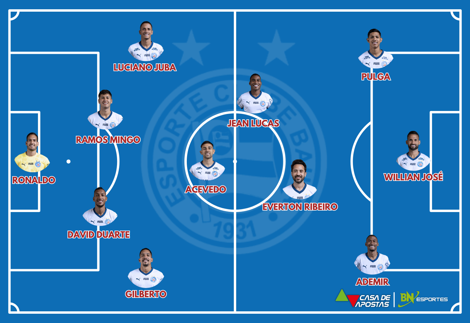 Bahia: Ronaldo; Gilberto, David Duarte, Ramos Mingo e Luciano Juba; Acevedo (Caio Alexandre), Everton Ribeiro e Jean Lucas; Ademir, Willian José e Pulga. Técnico: Rogério Ceni.