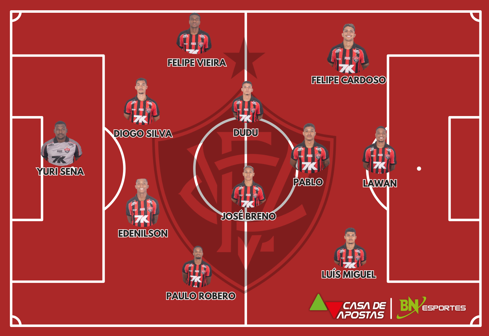 Vitória: Yuri Sena; Paulo Roberto, Edenilson, Diogo Silva e Filipe Vieira; José Breno, Dudu Miraíma e Pablo; Felipe Cardoso, Luís Miguel e Lawan. Técnico: Rodrigo Chagas.