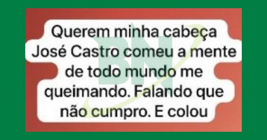 “Vem bomba para mim. Ainda com fama de não cumprir compromissos. Desdém como se eu fosse mentiroso. Não acreditam que não tenho nada. Me queimei a toa. Vão para cima de mim quente. Tá tudo armado para me fud*er. Vão vim com tudo. Vão me fud*er, hoje a ficha caiu”, disparou Udulrico em mensagens para Joneuma.